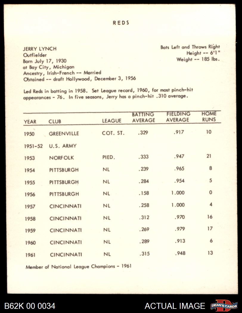 1962 Kahn's Jerry Lynch 8 - NM/MT