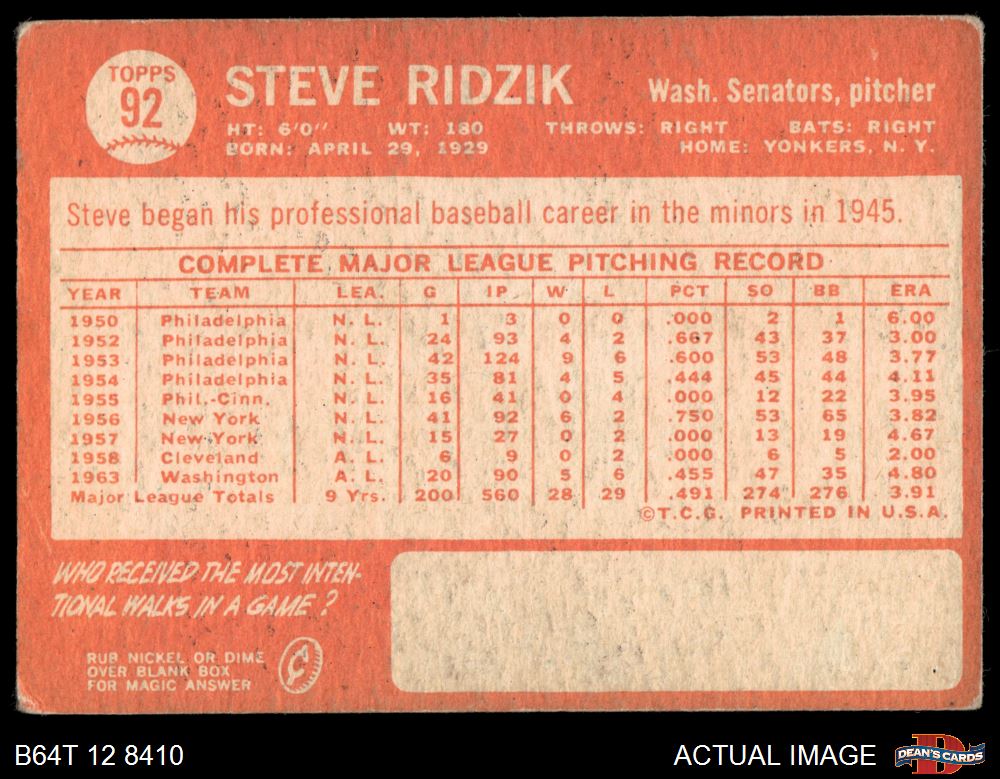 1964 Topps #92 Steve Ridzik 2.5 - GD+