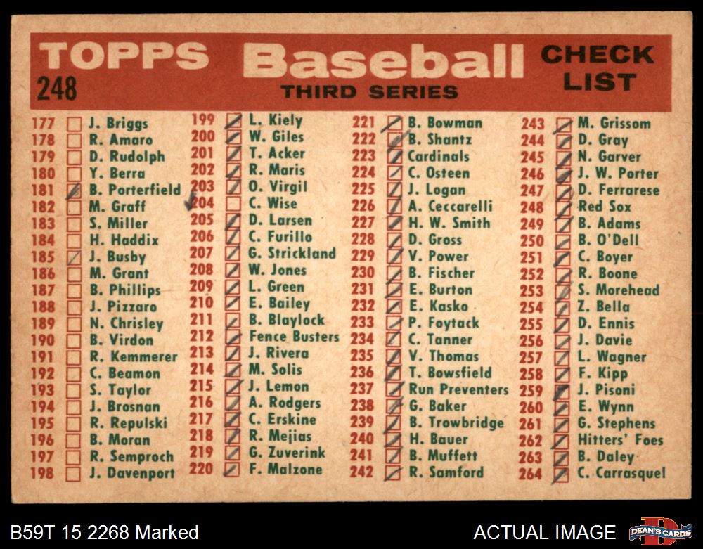 1959 Topps #248 Red Sox Team Checklist 1.5 - FAIR