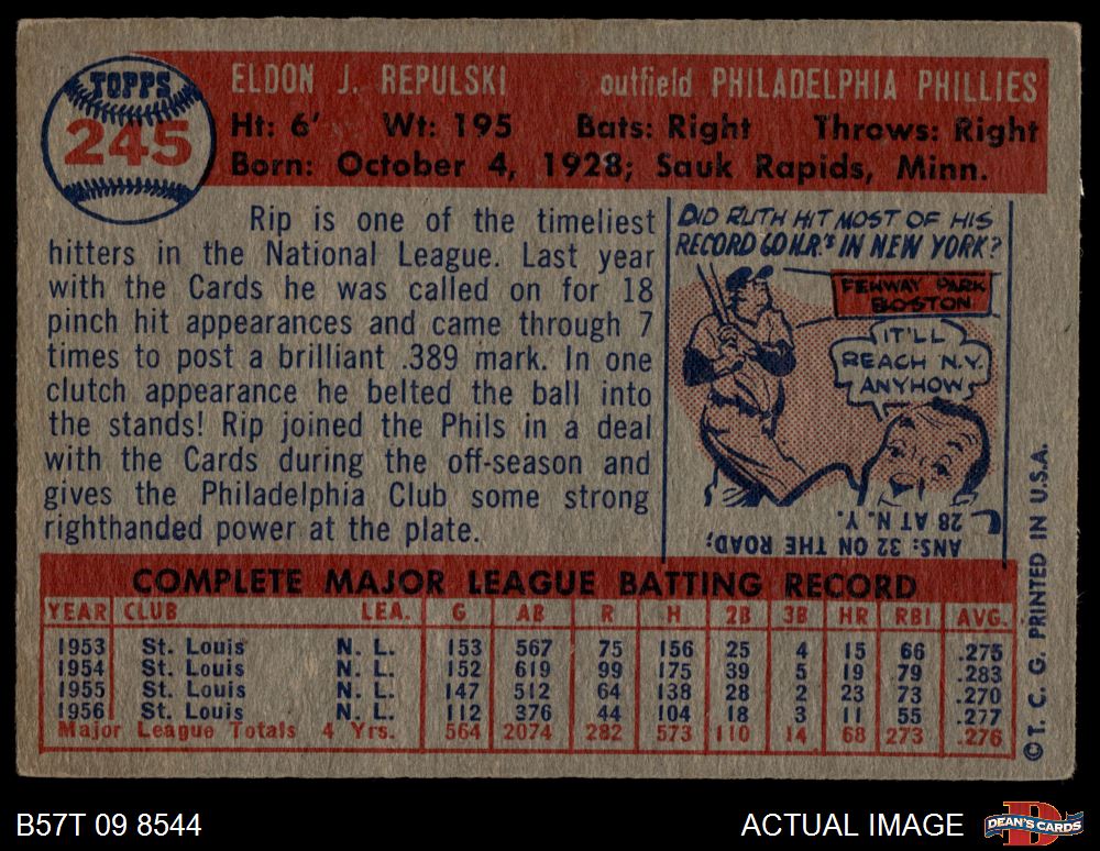 1957 Topps #245 Rip Repulski 2 - GOOD