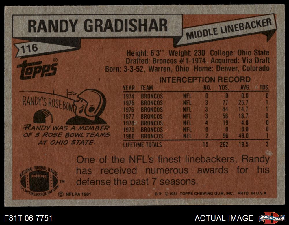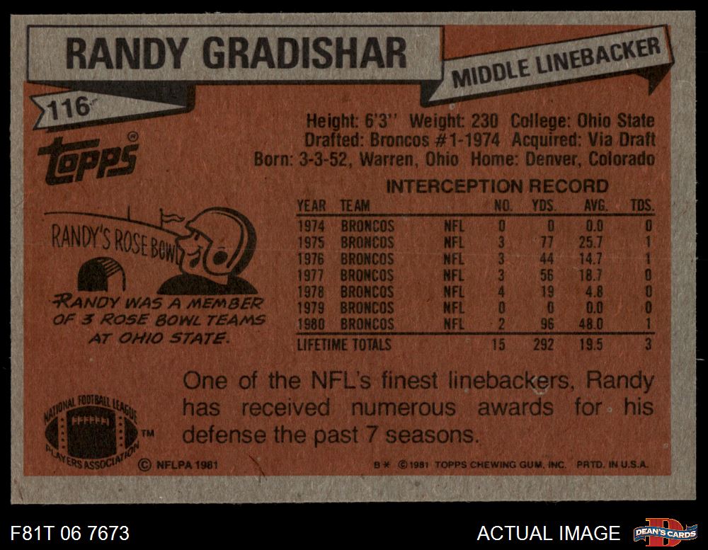 1981 Topps #116 Randy Gradishar