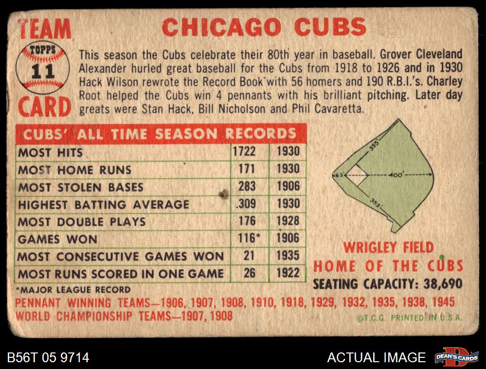 1956 Topps #11 D55 Cubs Team AUTHENTIC