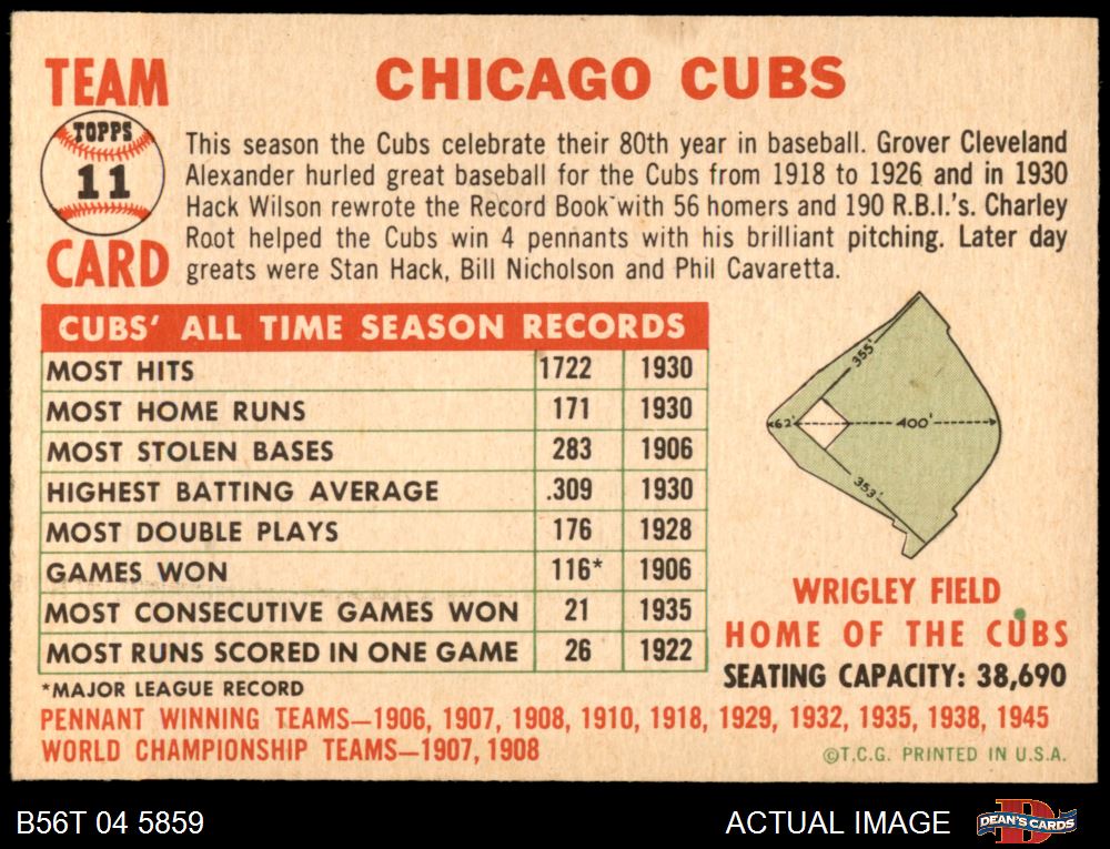 1956 Topps #11 D55 Cubs Team 6 - EX/MT