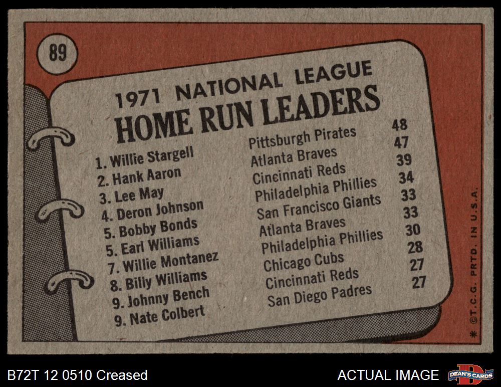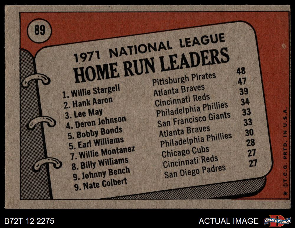 1972 Topps #89 - Hank Aaron / Willie Stargell / Lee May NL HR Leaders 3 - VG