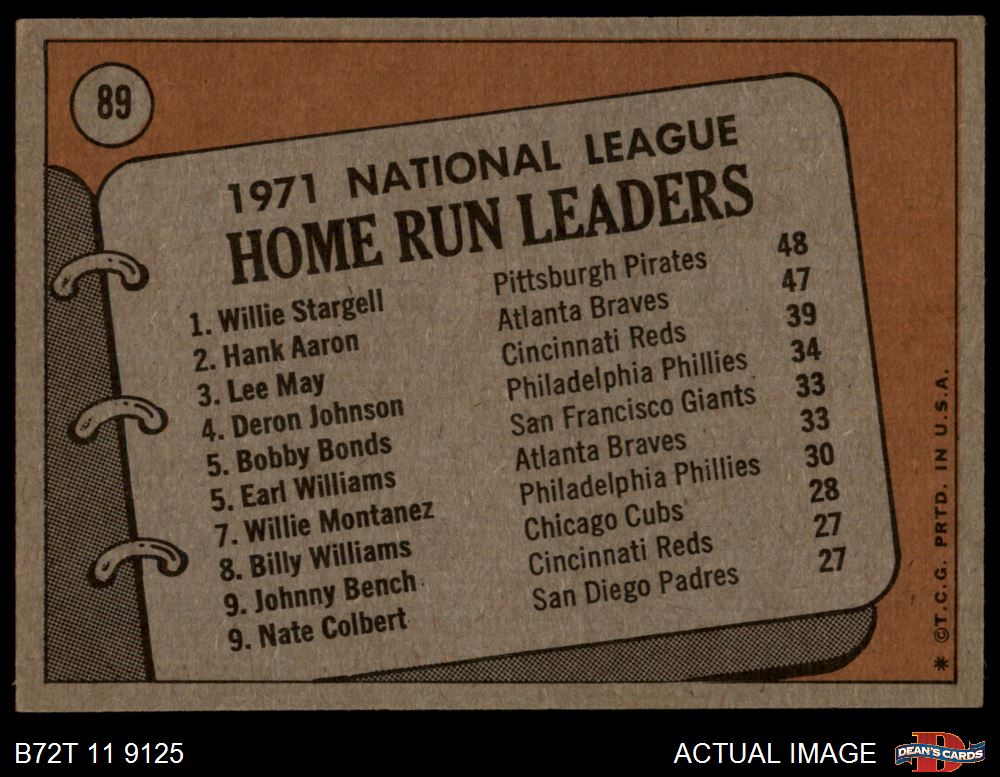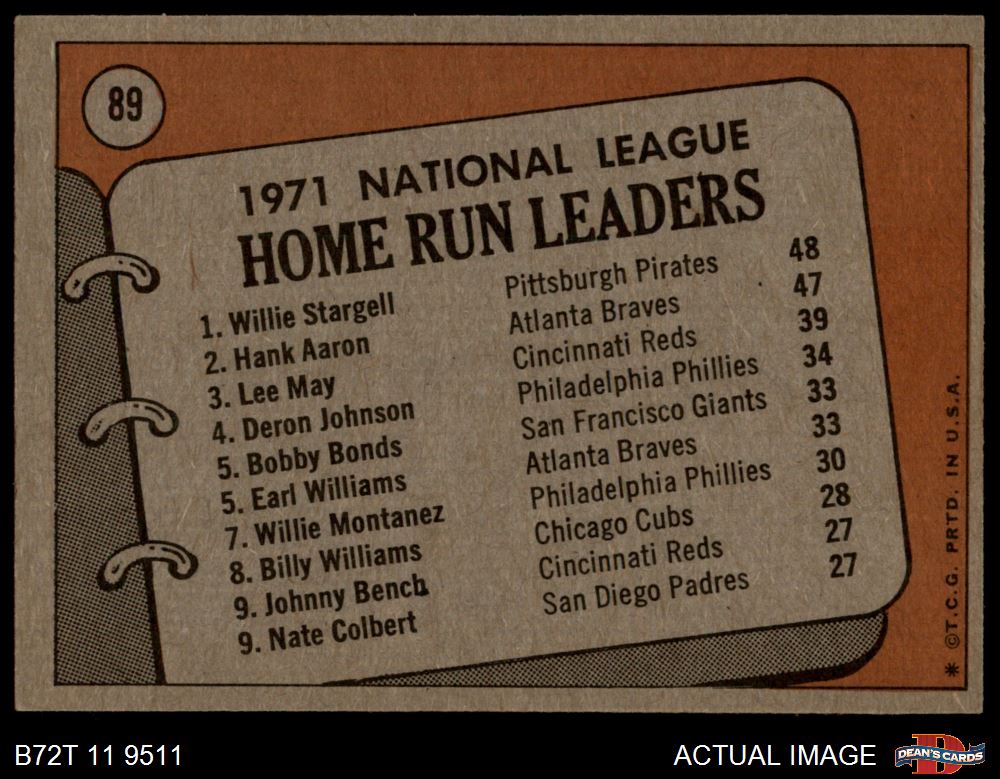 1972 Topps #89 - Hank Aaron / Willie Stargell / Lee May NL HR Leaders 5 - EX
