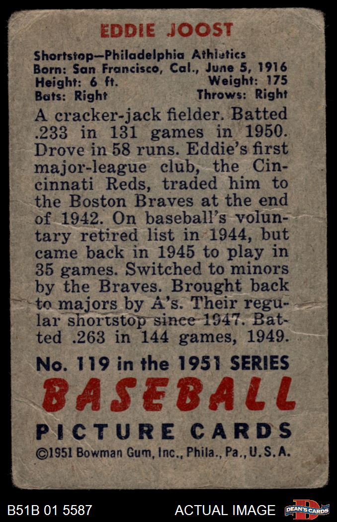 1951 Bowman #119 Eddie Joost AUTHENTIC