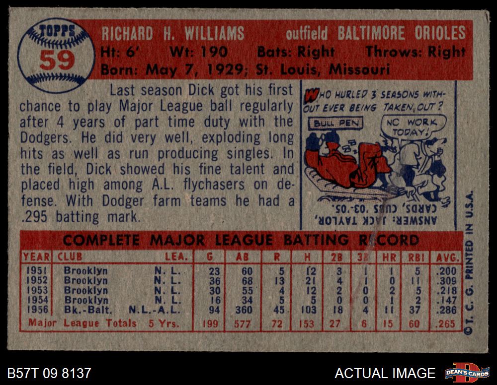 1957 Topps #59 Dick Williams 4 - VG/EX