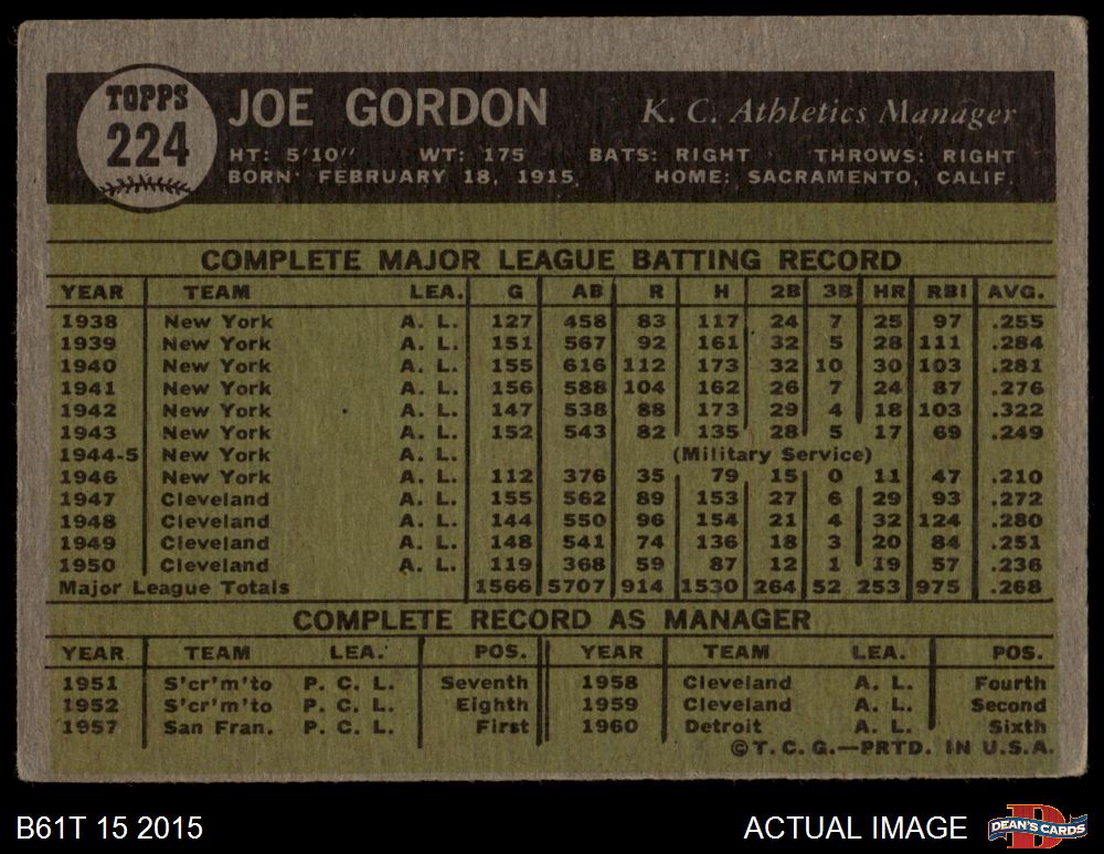 1961 Topps #224 Joe Gordon 2 - GOOD