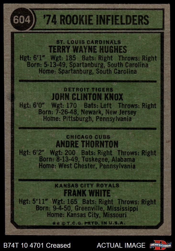 1974 Topps #604 - Frank White / Andre Thornton / Terry Hughes / John Knox Rookie Infielders 3 - VG