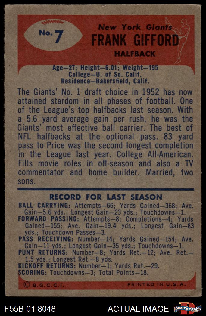 1955 Bowman #7 Frank Gifford 3 - VG