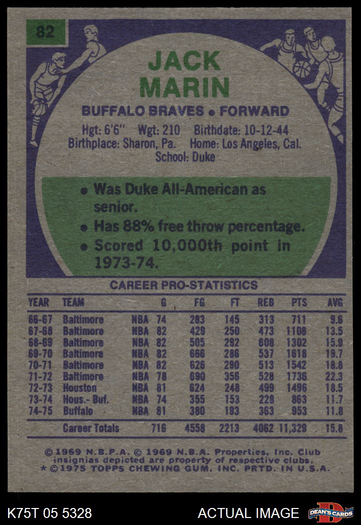 1975 Topps #82 Jack Marin 6 - EX/MT