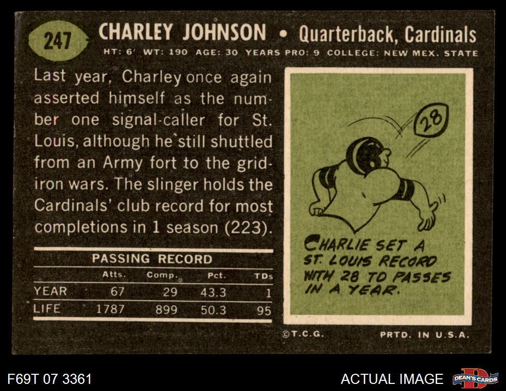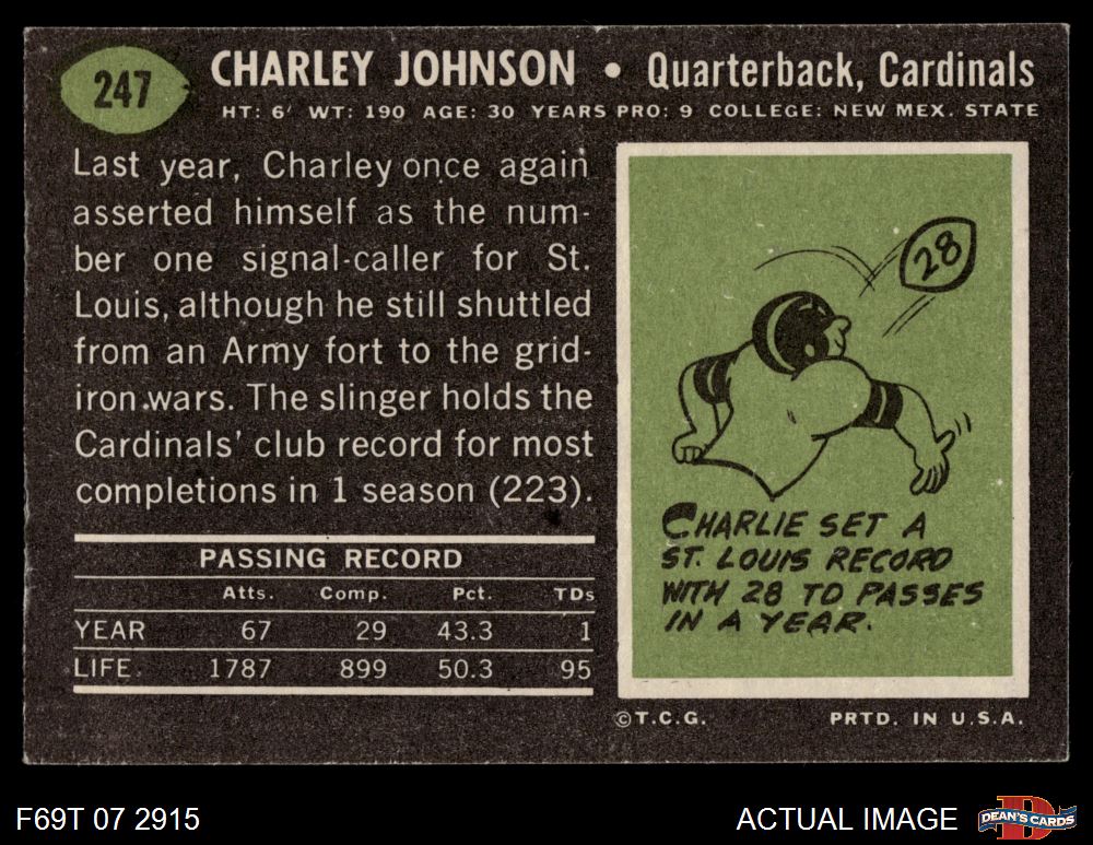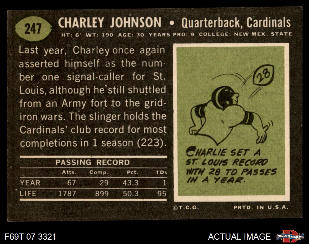 1969 Topps #247 Charley Johnson