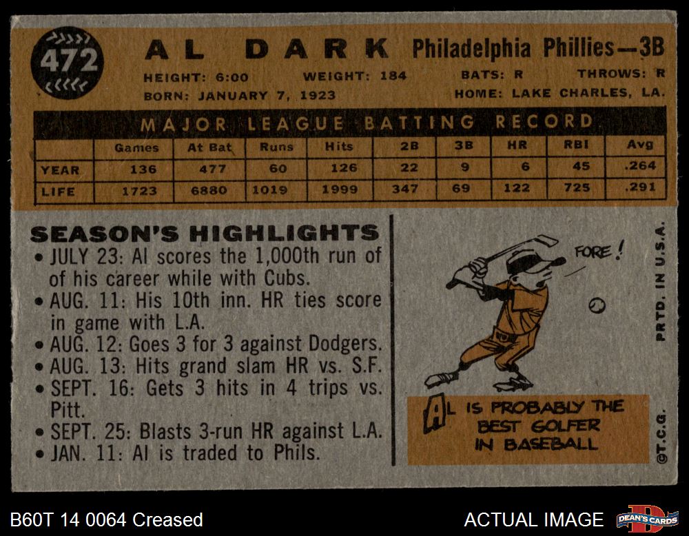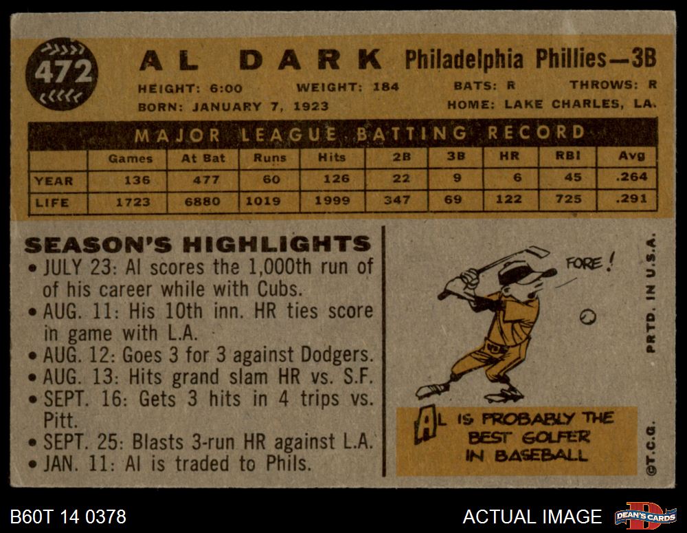 1960 Topps #472 Al Dark
