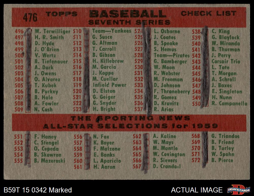 1959 Topps #476 Indians Team Checklist 1 - POOR