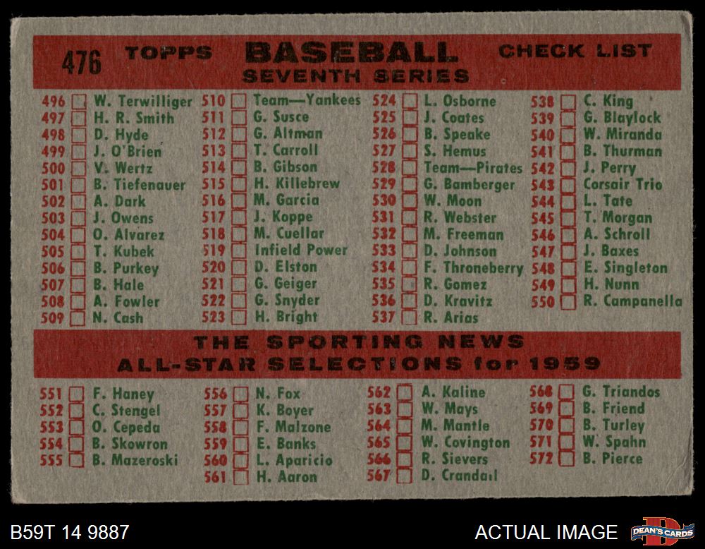 1959 Topps #476 Indians Team Checklist 3 - VG