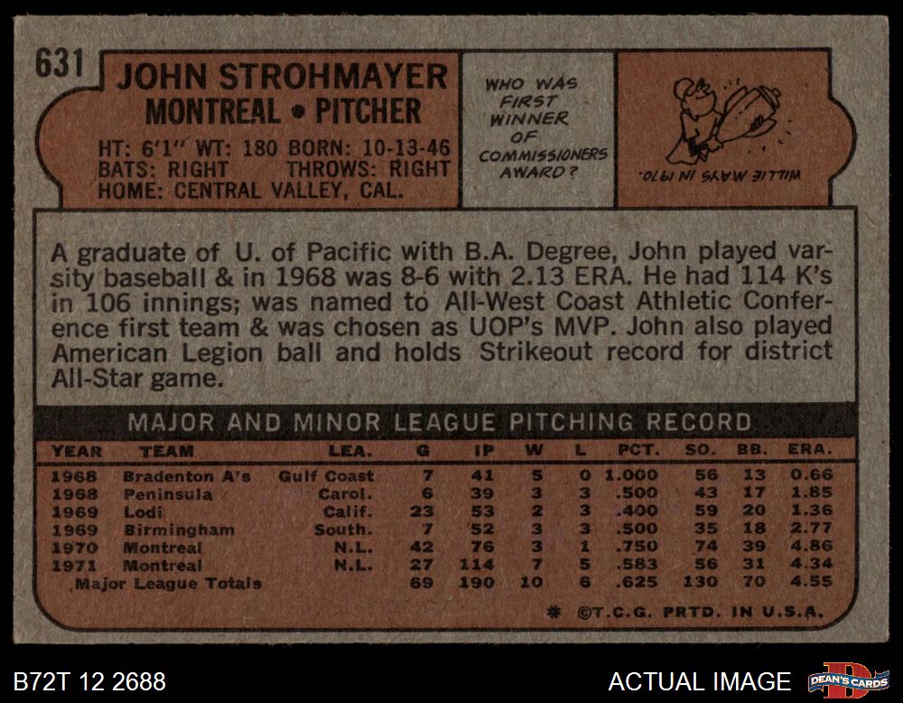 1972 Topps #631 John Strohmayer 2 - GOOD