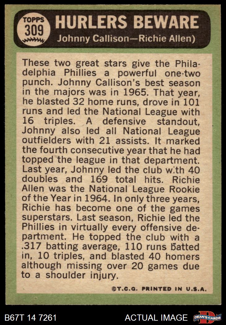 1967 Topps #309 - Johnny Callison / Rich Allen Hurlers Beware 6 - EX/MT