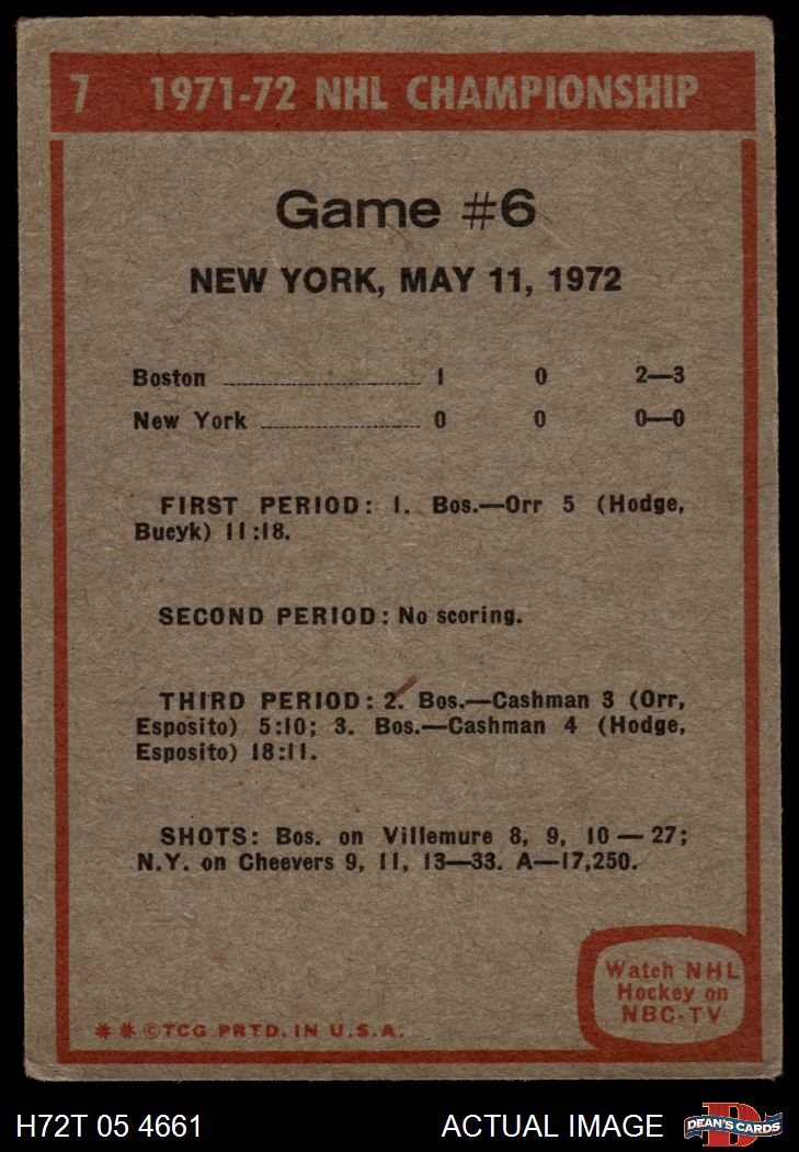 1972 Topps #7 NHL Playoff Game 6 3 - VG