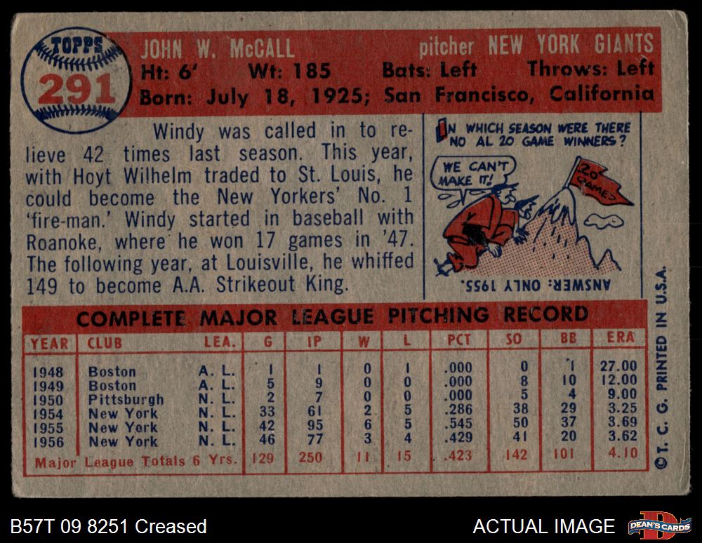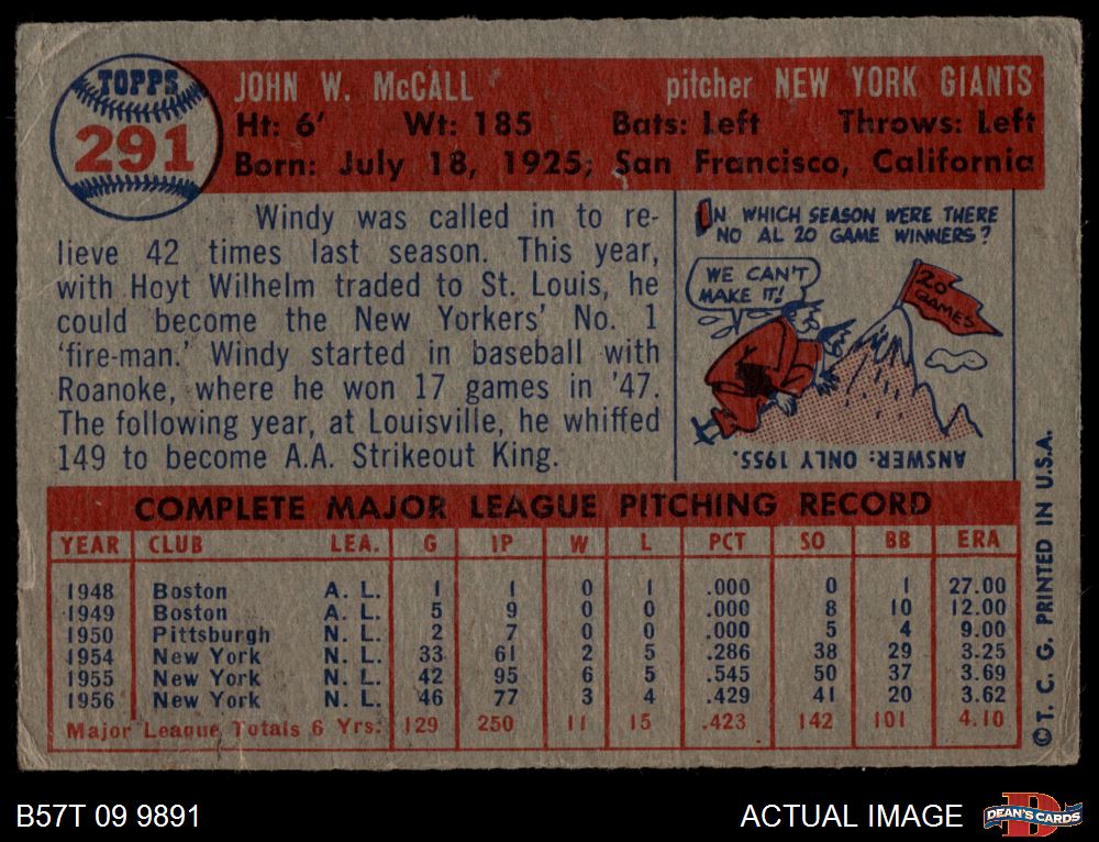 1957 Topps #291 Windy McCall