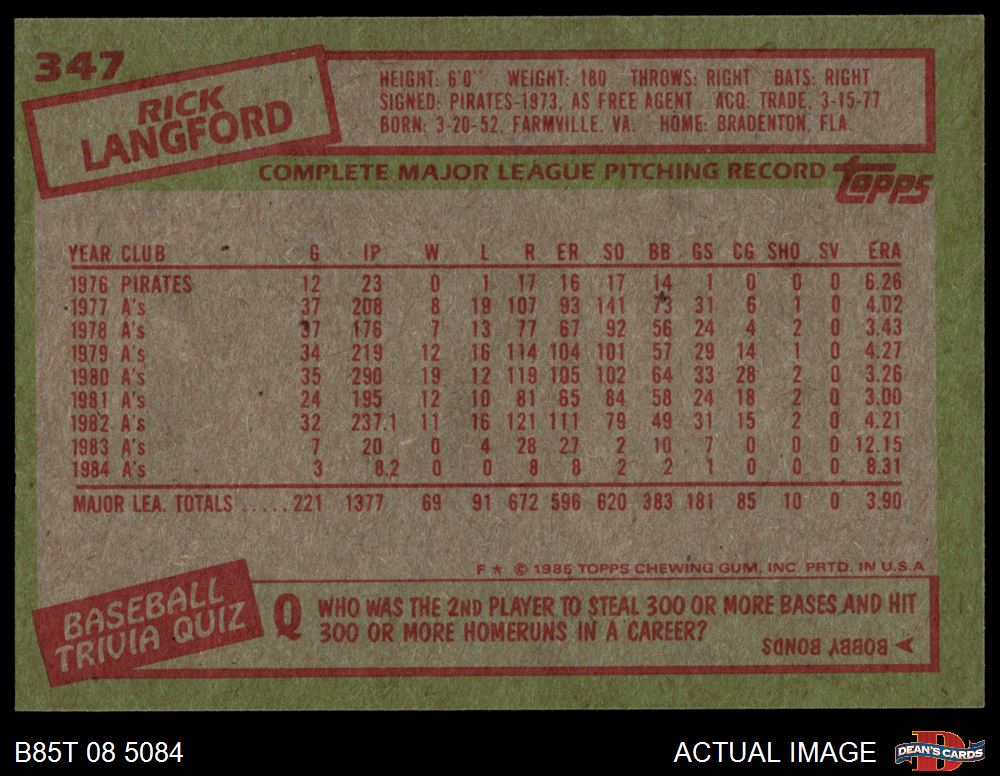 1985 Topps #347 Rick Langford 8 - NM/MT