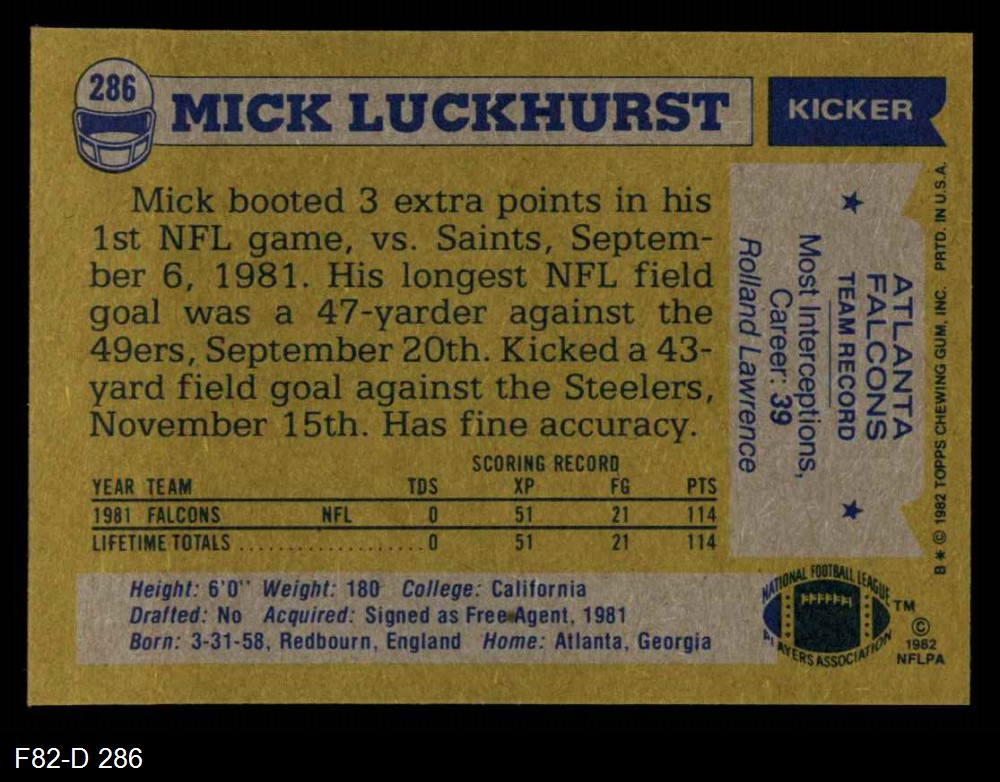 1982 Topps #286 Mick Luckhurst
