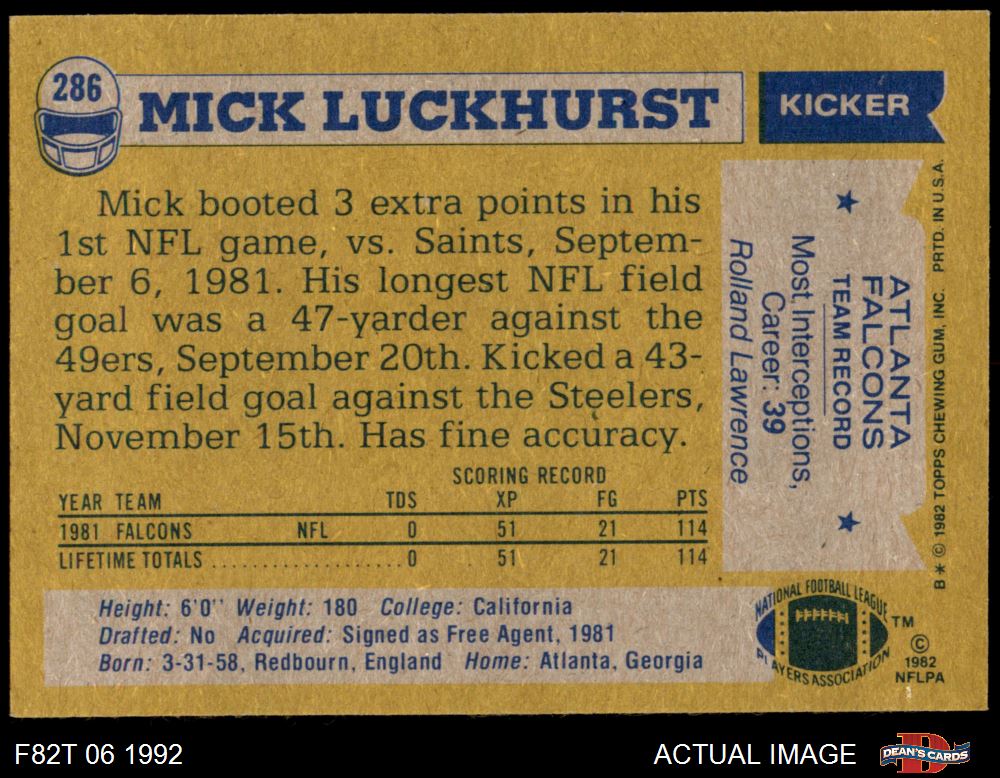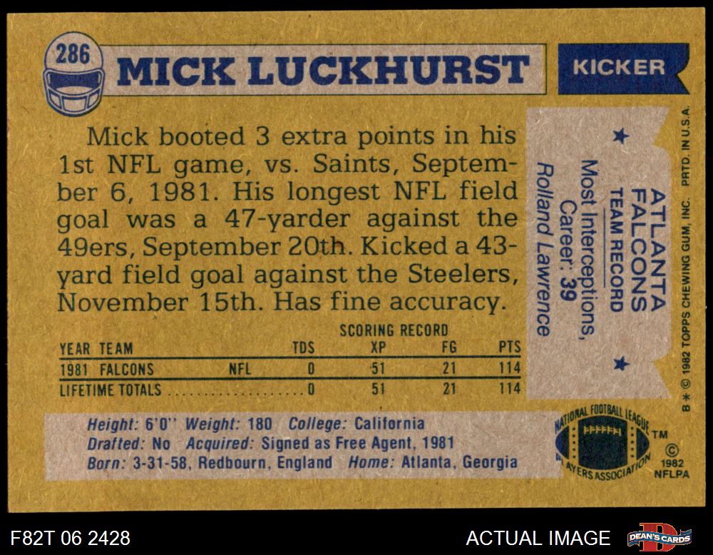 1982 Topps Football Cards (2,982 available)1982 Topps Falcons (153 available)