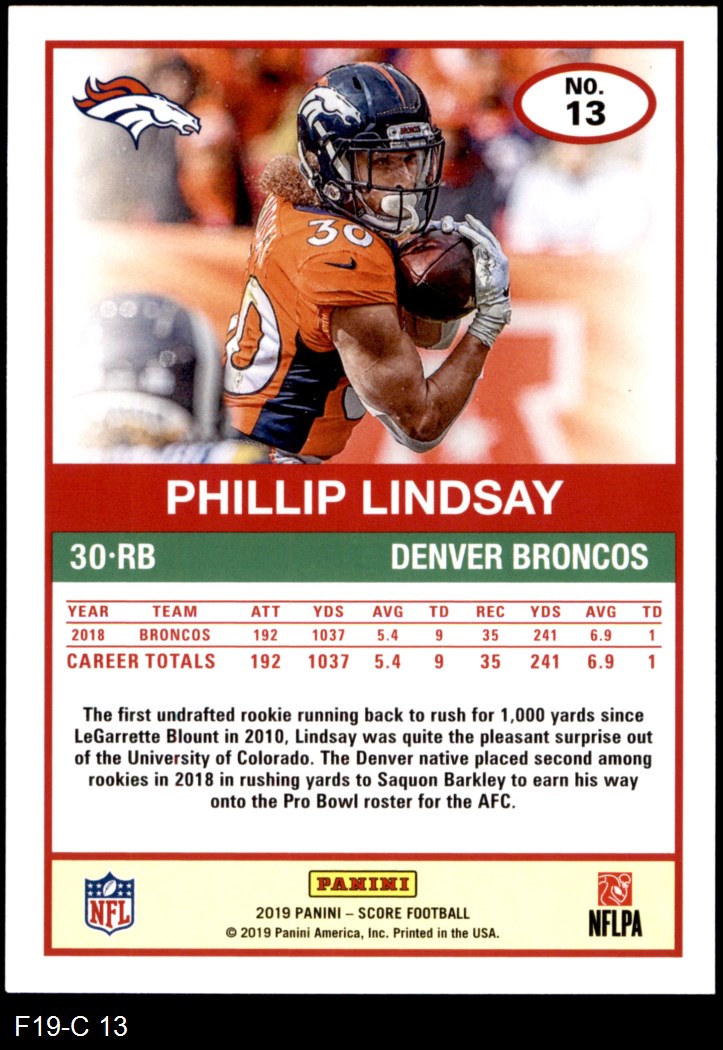 2019 Score #13 Phillip Lindsay 8 - NM/MT