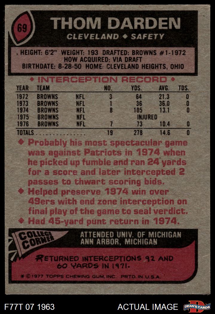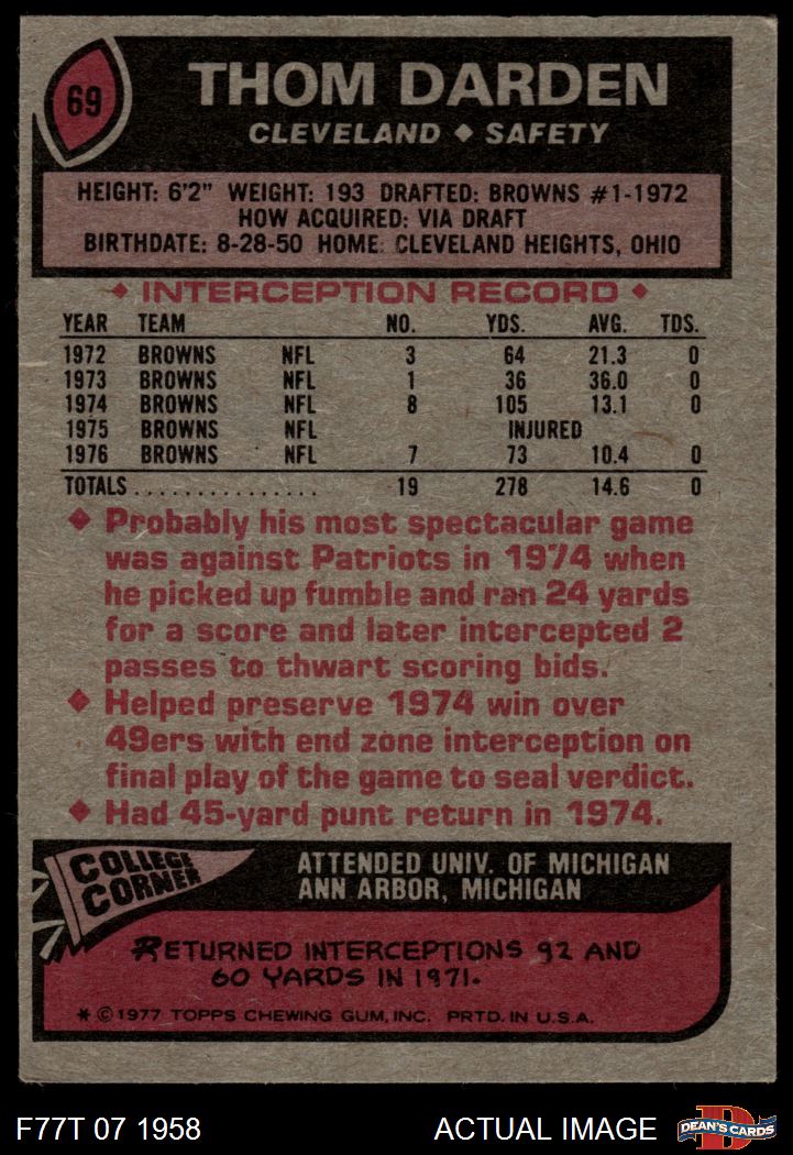 1977 Topps #69 Thom Darden 4 - VG/EX