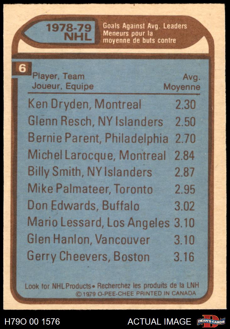 1979 O-Pee-Chee #6 Goals Against Leaders