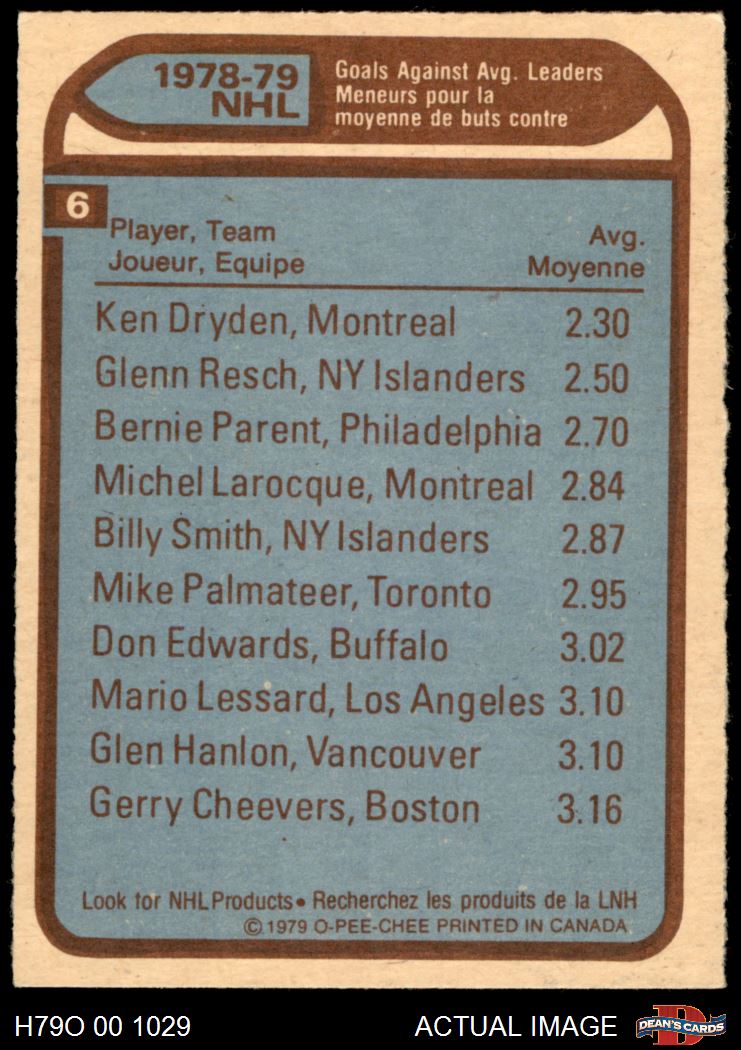 1979 O-Pee-Chee #6 - Ken Dryden / Glenn Resch / Bernie Parent Goals Against Leaders 7 - NM