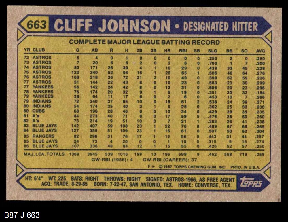 1987 Topps #663 Cliff Johnson 8 - NM/MT