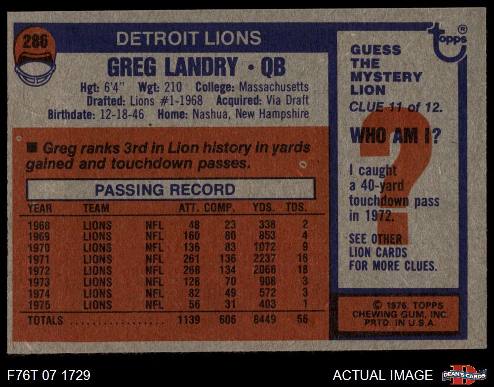 1976 Topps #286 Greg Landry 4 - VG/EX