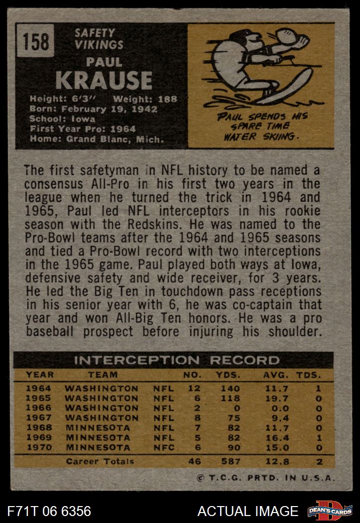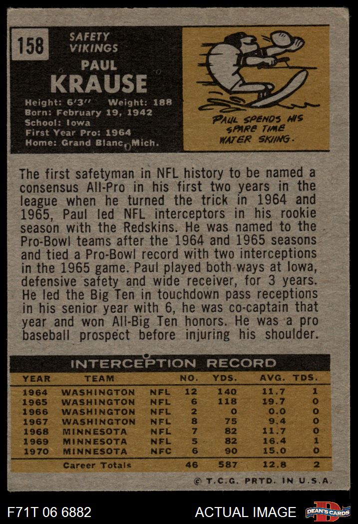 1971 Topps #158 Paul Krause 4 - VG/EX