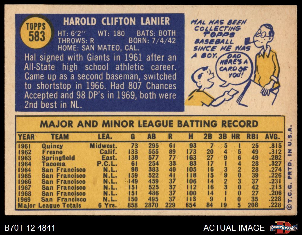 1970 Topps #583 Hal Lanier 6 - EX/MT
