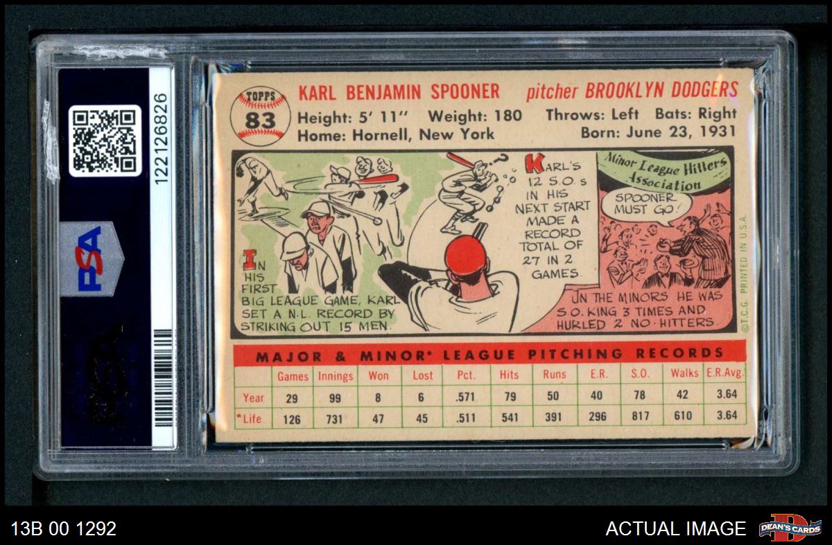 1956 Topps #83 Karl Spooner PSA 7 - NM