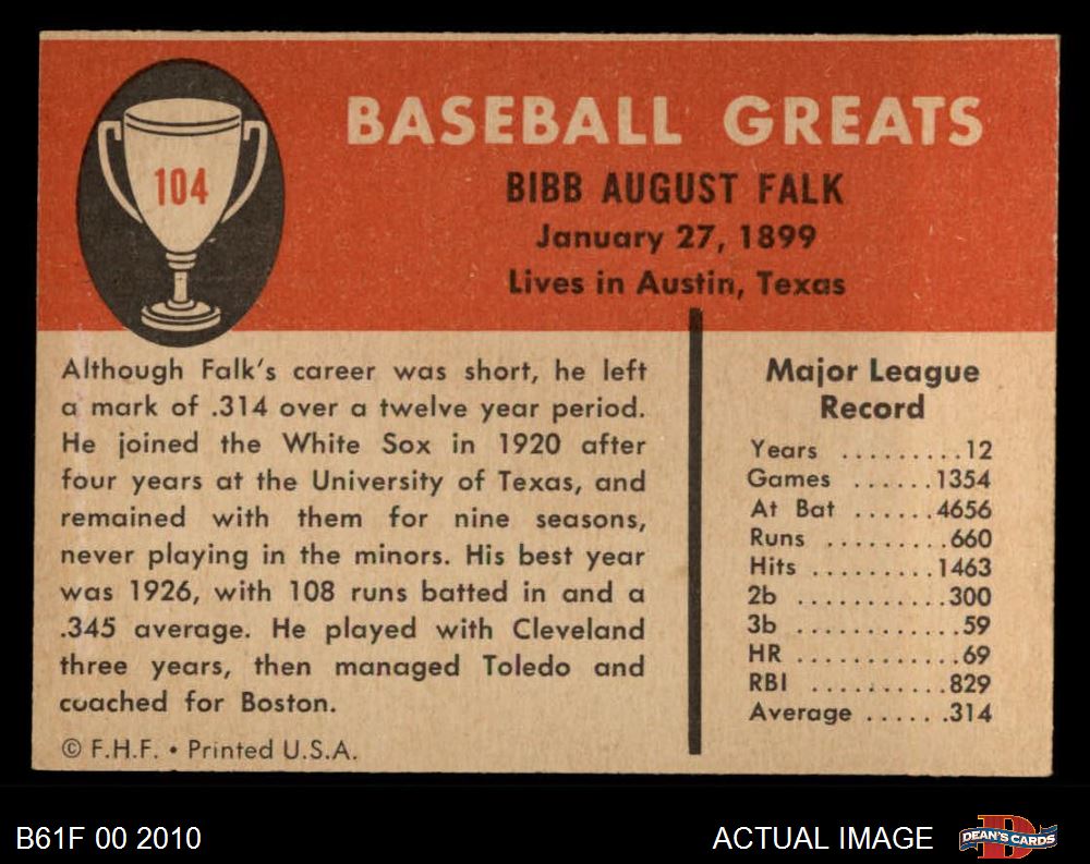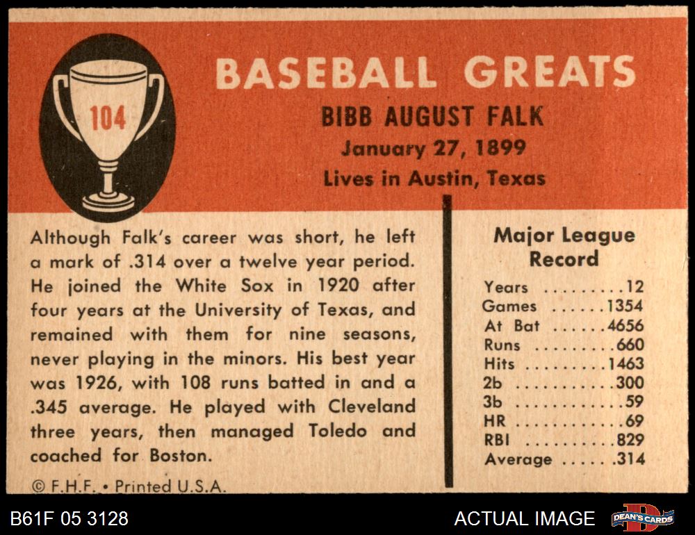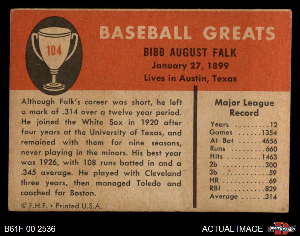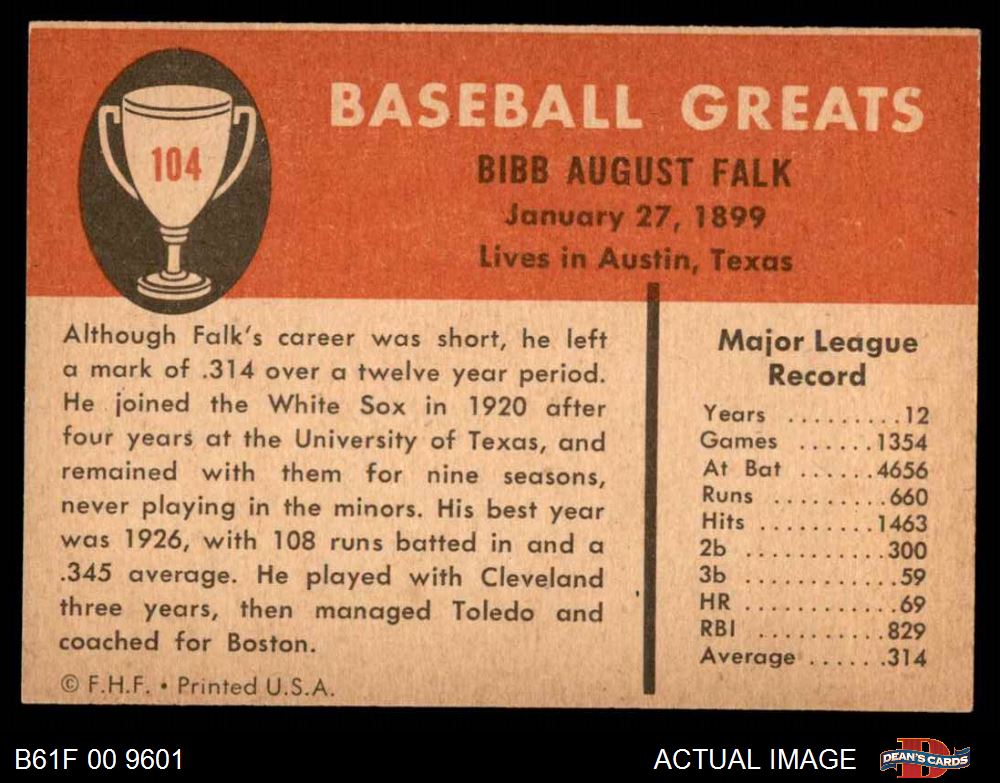 1961 Fleer #104 Bibb Falk