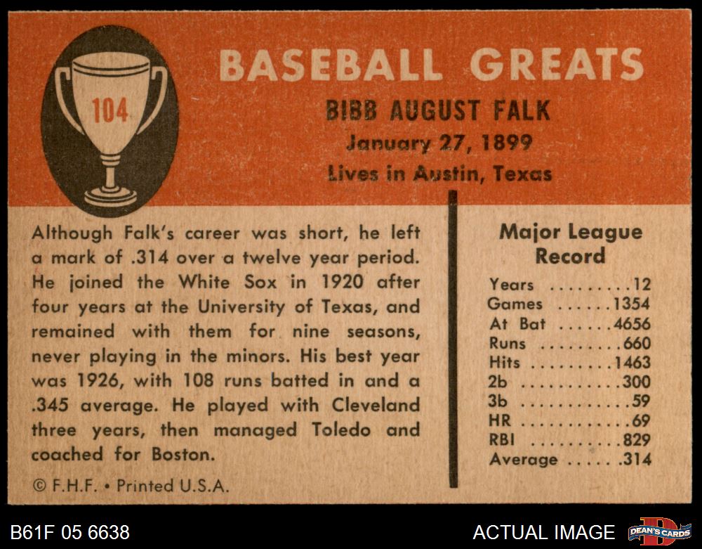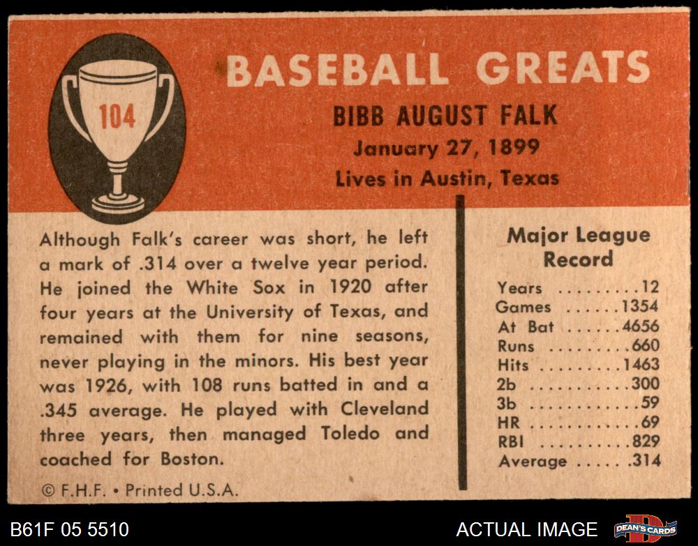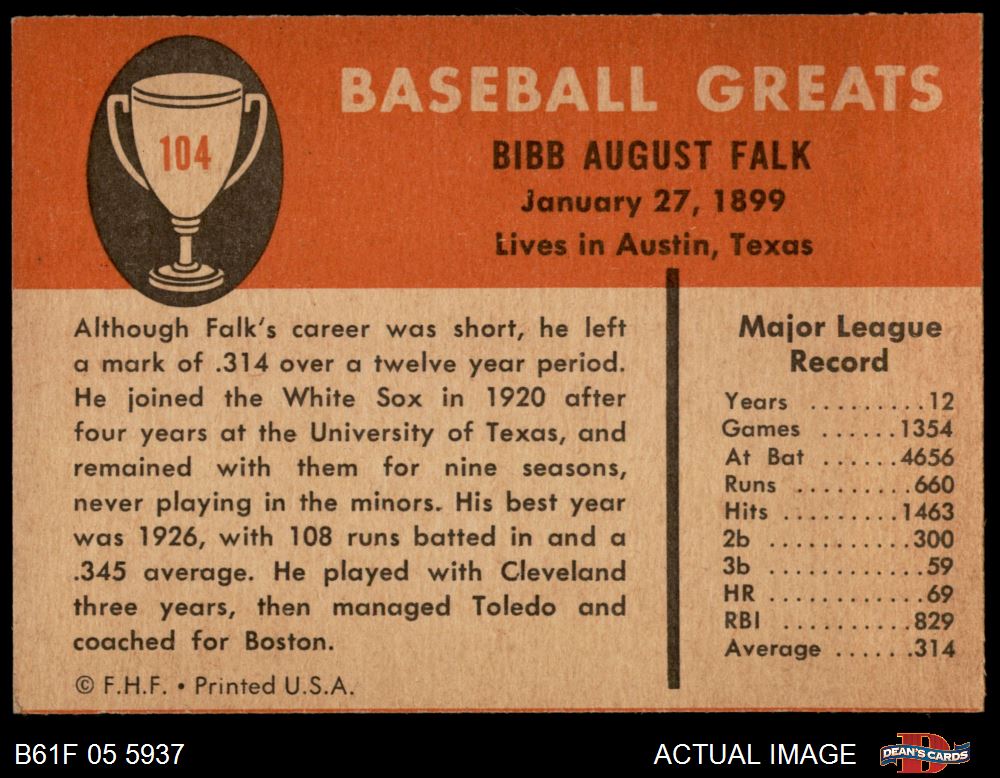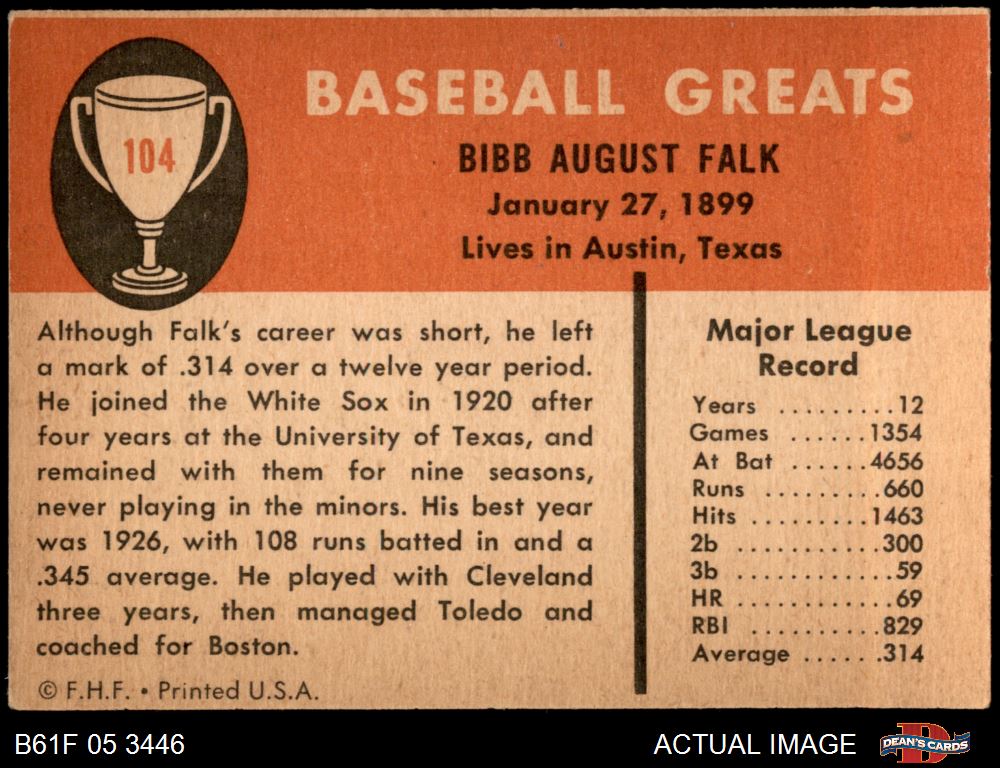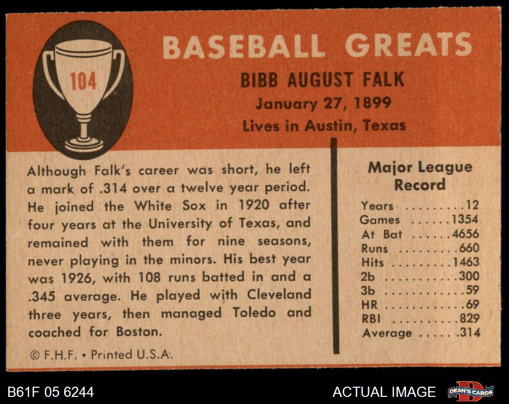 1961 Fleer #104 Bibb Falk
