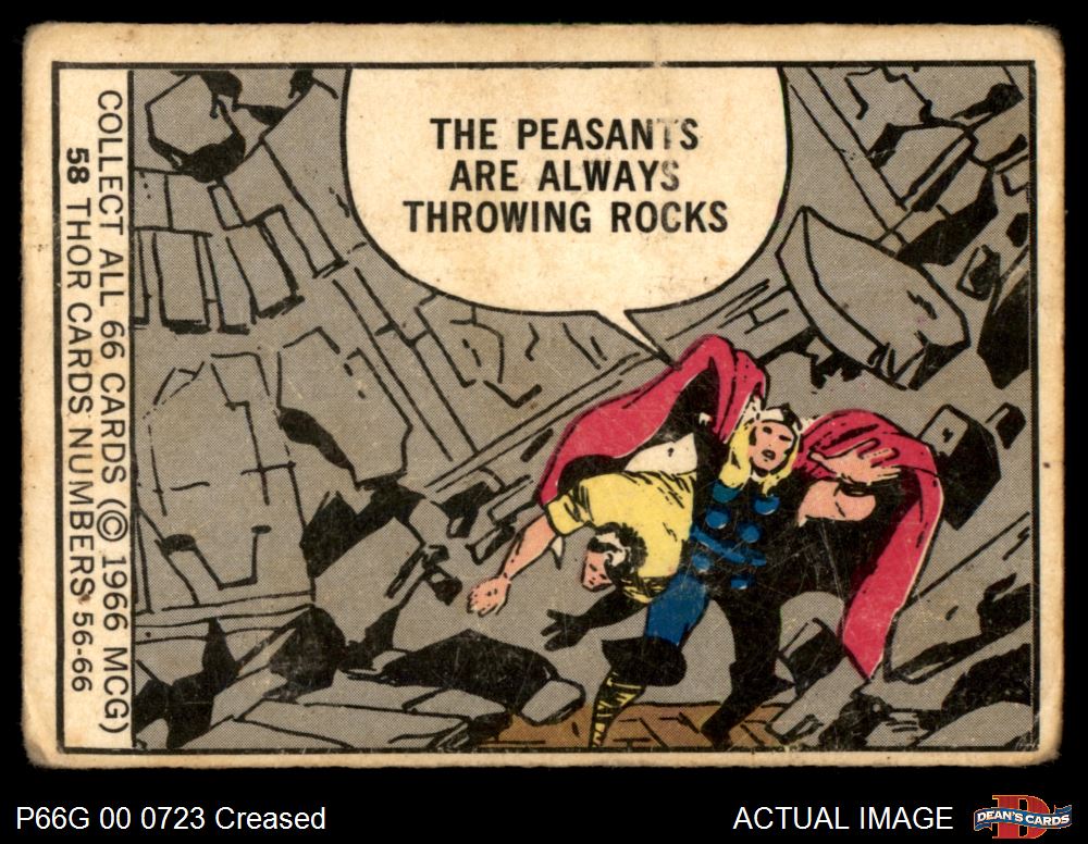 1966 Donruss Marvel Super Hero #58  The Peasants Are Always Throwing Rocks Front Thumbnail