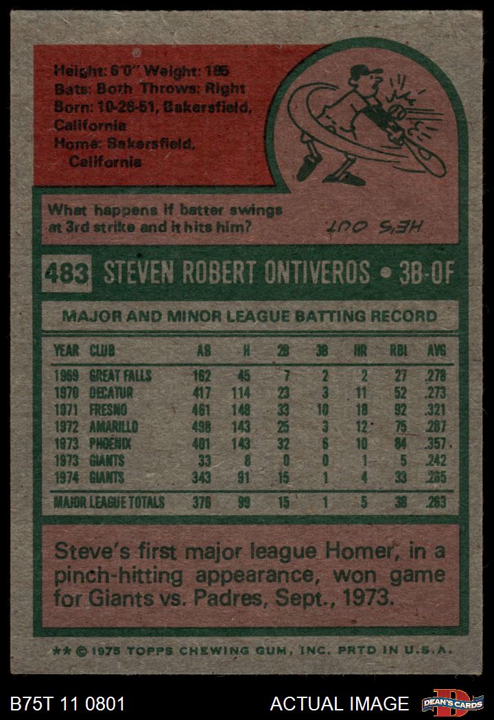 1975 Topps #483 Steve Ontiveros 4 - VG/EX