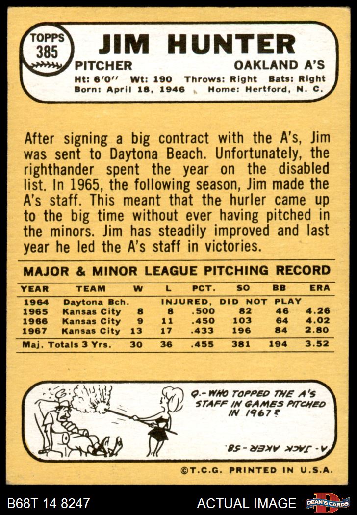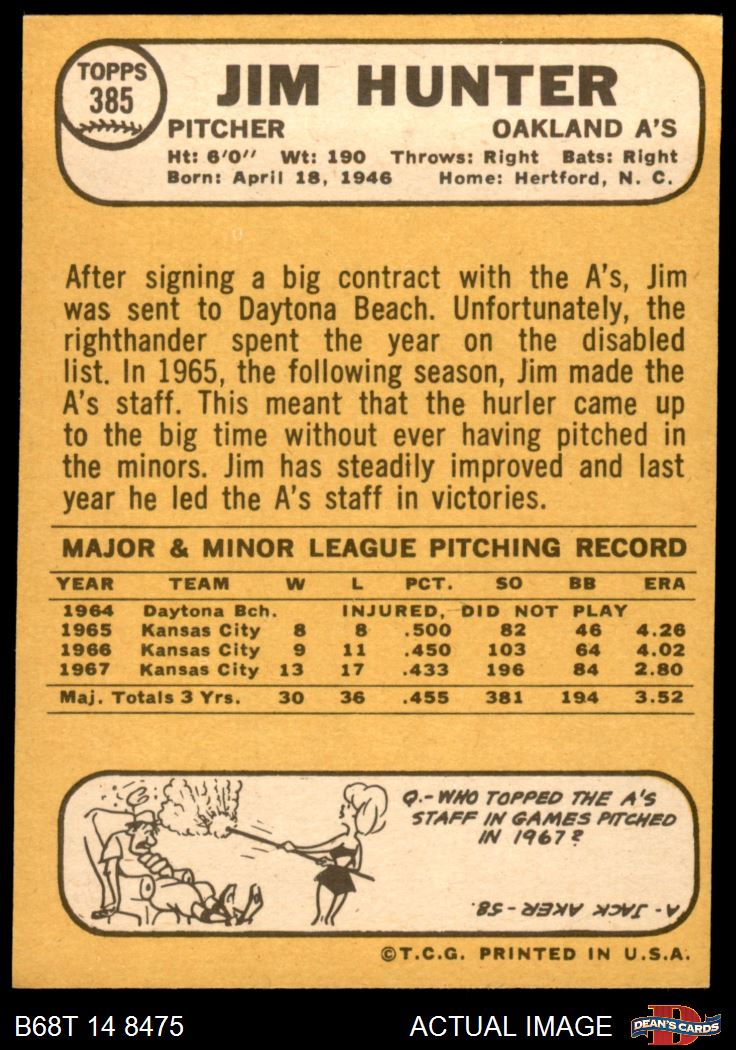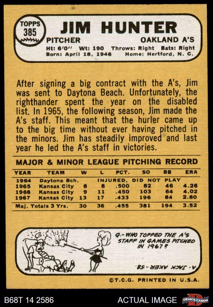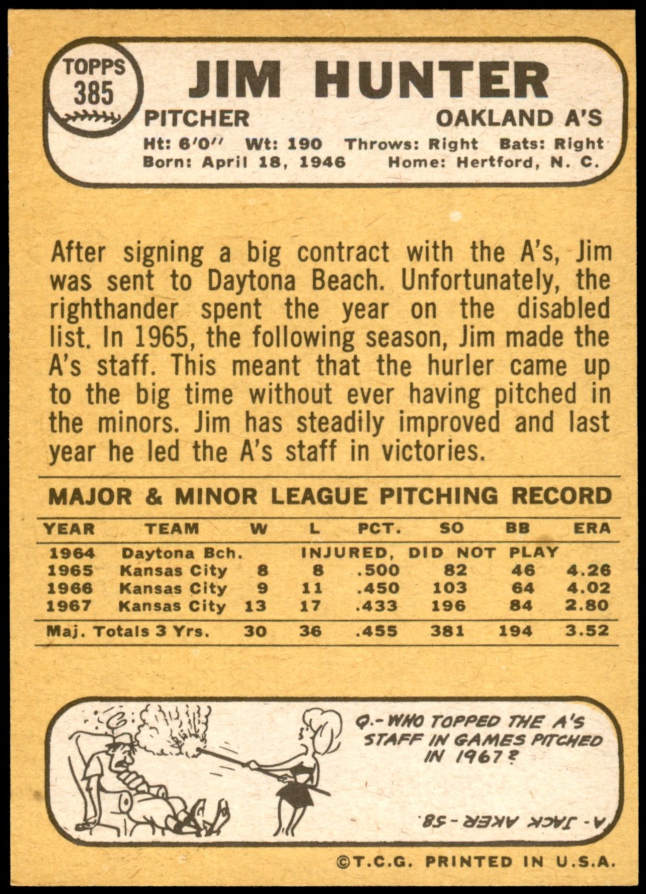 1968 Topps #385 Catfish Hunter