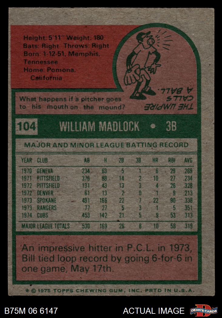 1975 Topps Mini #104 Bill Madlock 6 - EX/MT