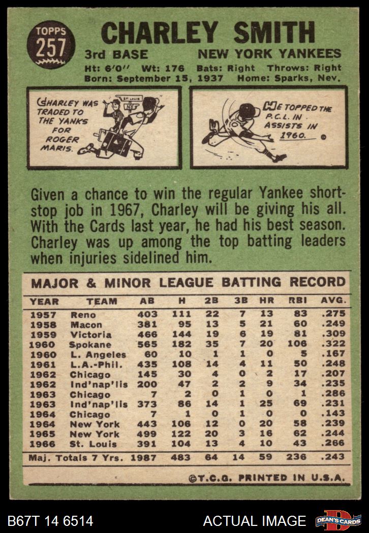 1967 Topps #257 Charley Smith
