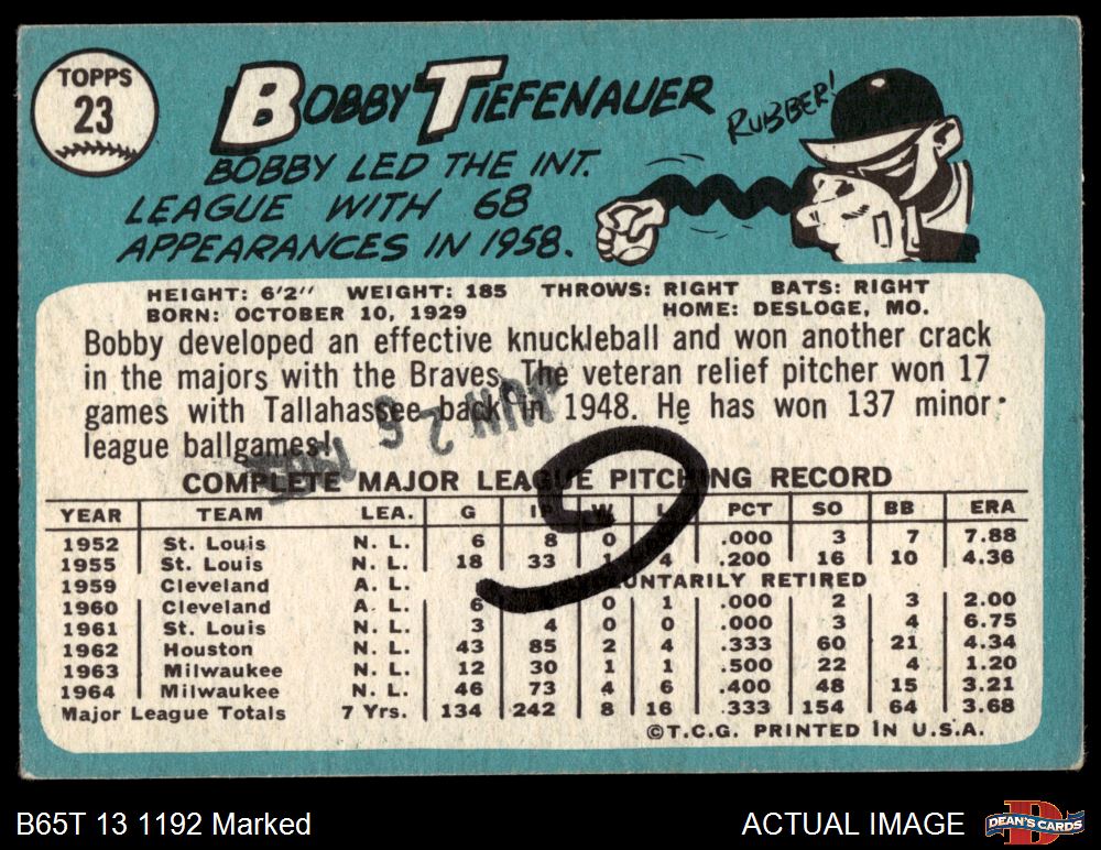 1965 Topps #23 Bob Tiefenauer 1.5 - FAIR