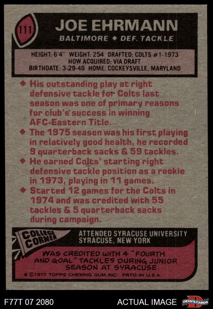 1977 Topps #111 Joe Ehrmann 7 - NM