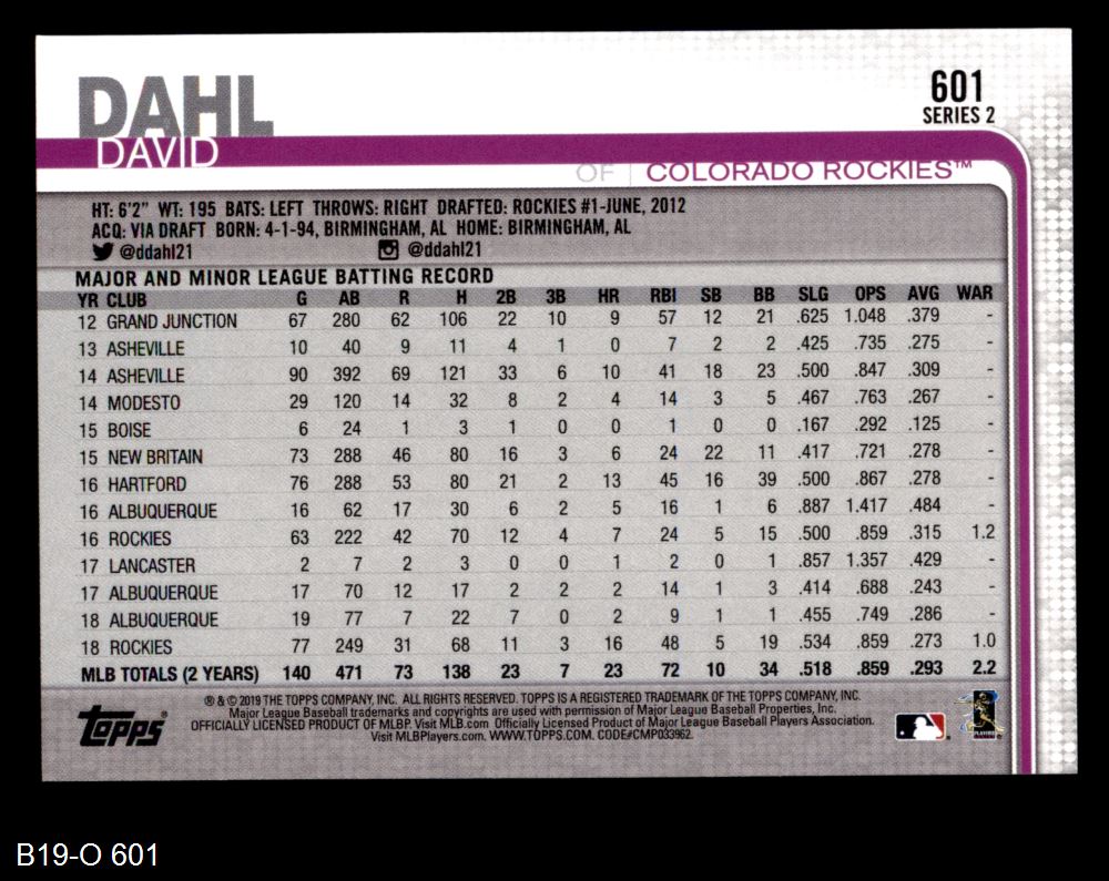 2019 Topps #601 David Dahl