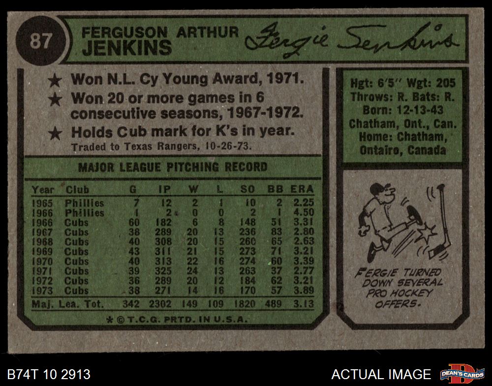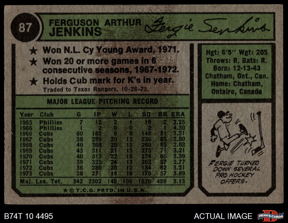 1974 Topps #87 Fergie Jenkins