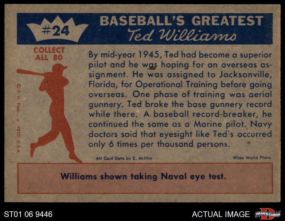 1959 Fleer #24 - Ted Williams Sharpshooter 6 - EX/MT