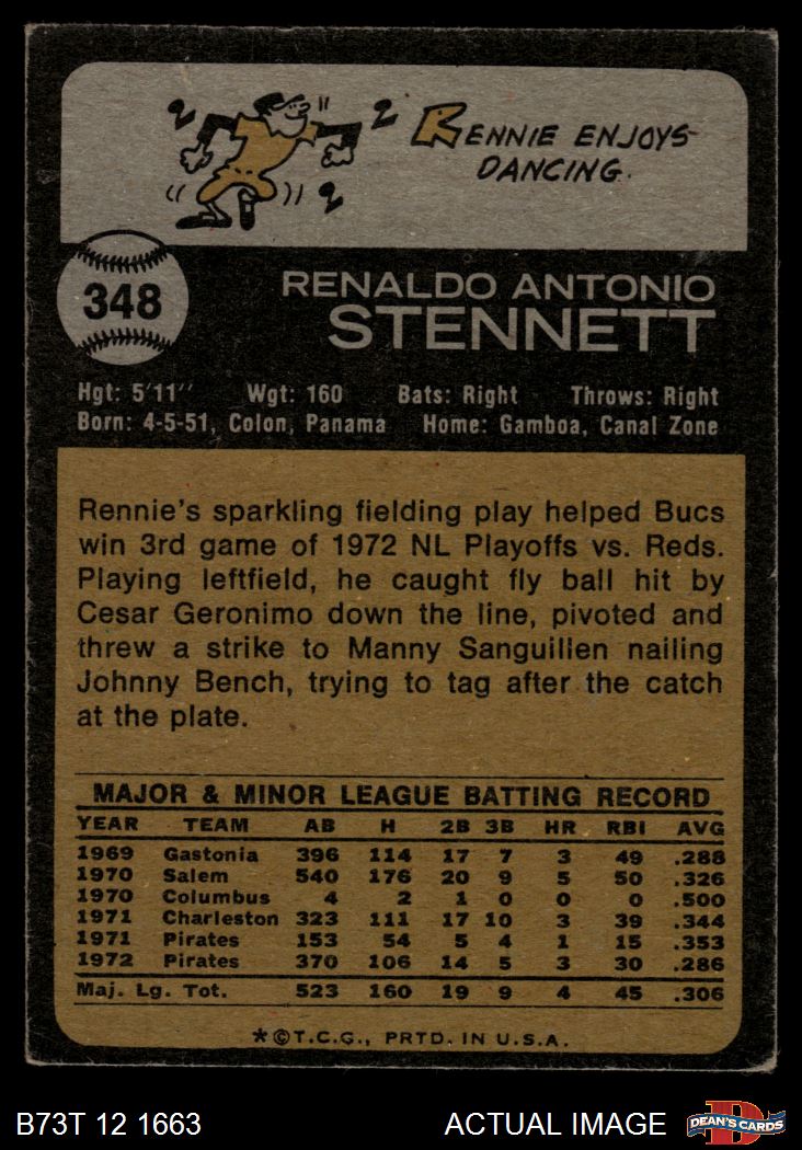 1973 Topps #348 Rennie Stennett 2 - GOOD