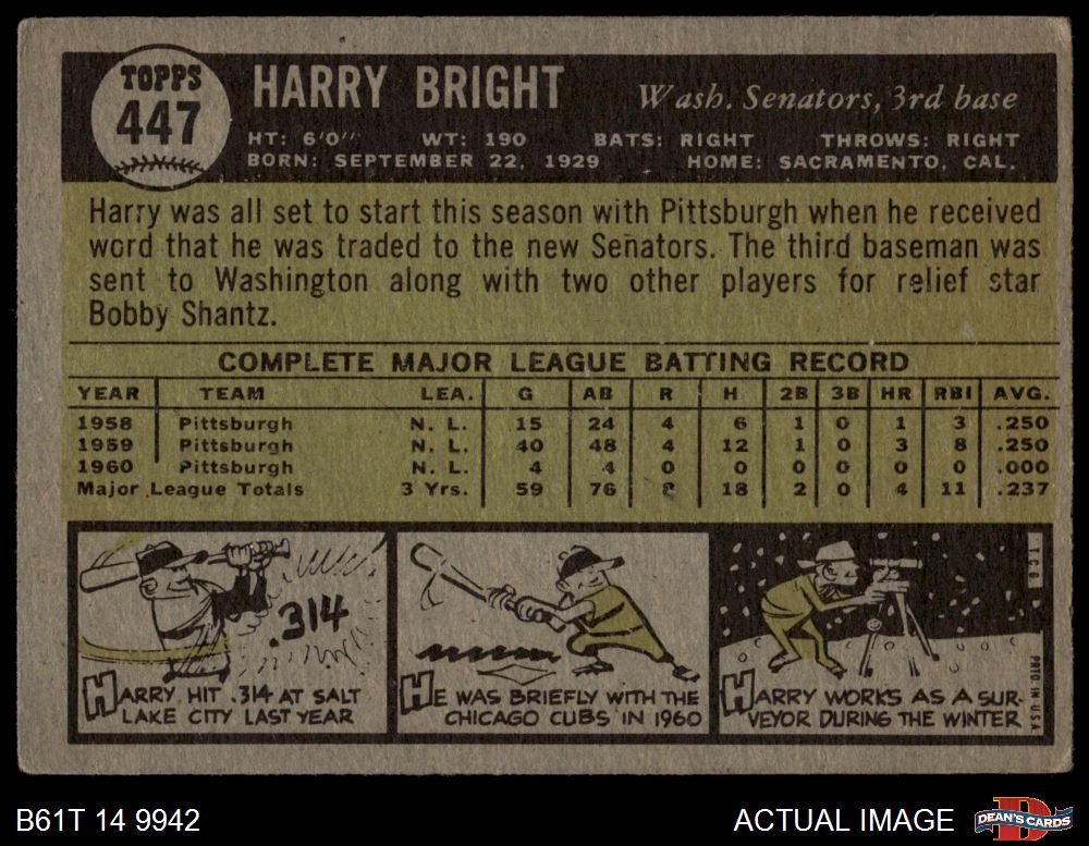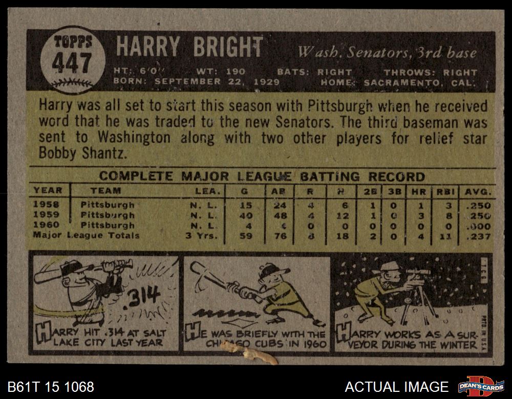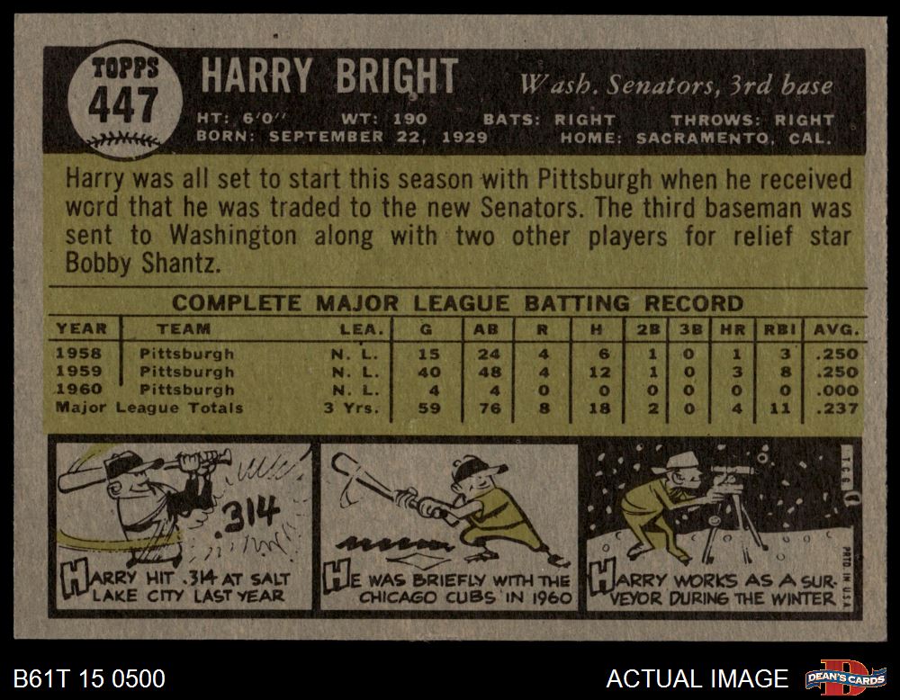 1961 Topps Baseball Cards (10,654 available)1961 Topps Senators (620 available)