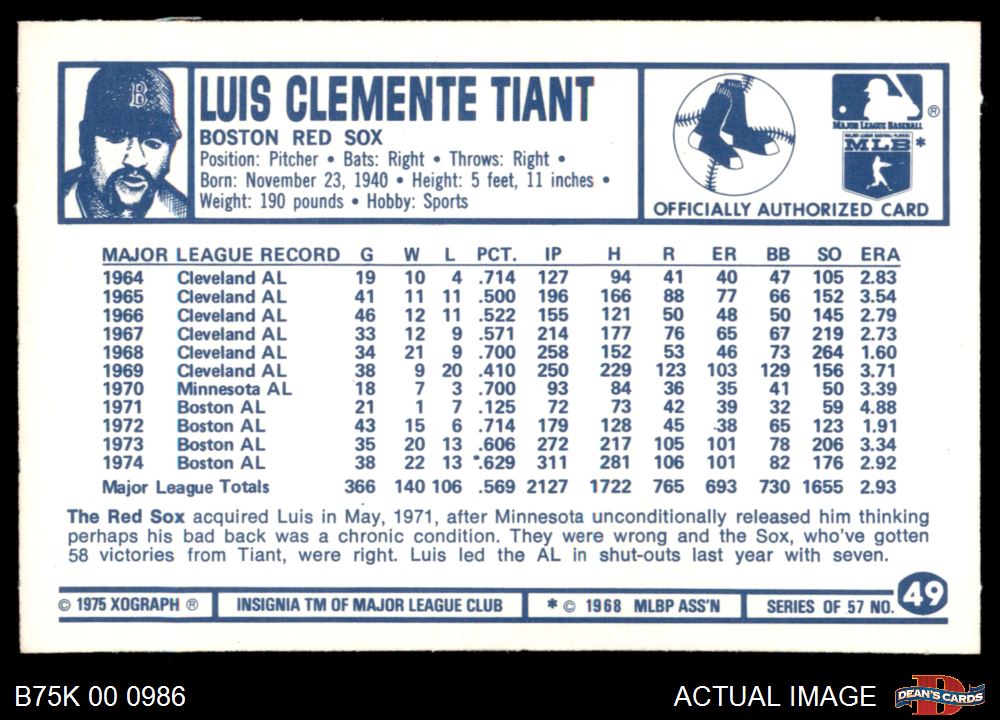 1975 Kellogg's #49 Luis Tiant 8 - NM/MT